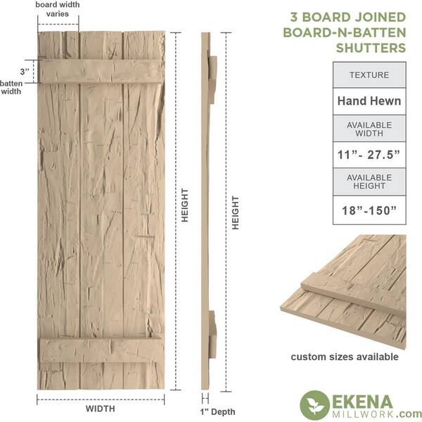 16.5 in. x 56 in. Timberthane Polyurethane 3-Board Joined Board-n-Batten Hand Hewn Faux Wood Shutters Pair
