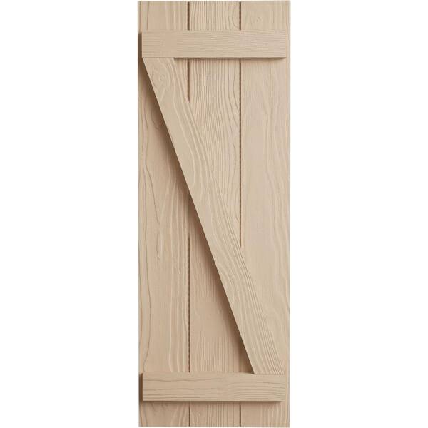 16.5 in. x 66 in. Timberthane Polyurethane 3-Board Joined Board-n-Batten Sandblasted Faux Wood Shutters w/Z-Board Pair