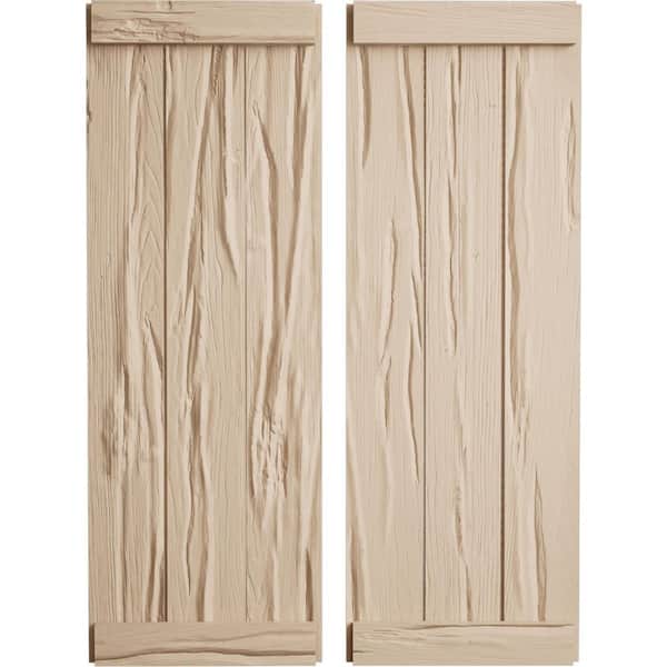 16.5 in. x 72 in. Timberthane Polyurethane 3-Board Joined Board-n-Batten Riverwood Faux Wood Shutters, End Batten Pair
