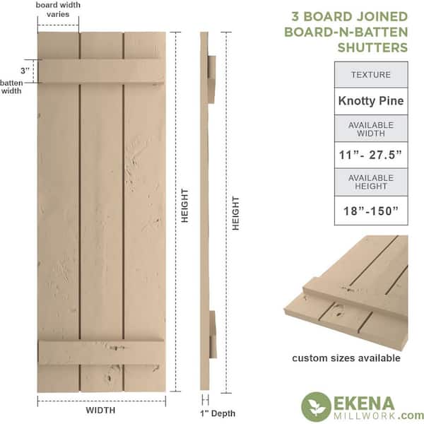 16.5 in. x 88 in. Timberthane Polyurethane 3-Board Joined Board-n-Batten Knotty Pine Faux Wood Shutters Pair