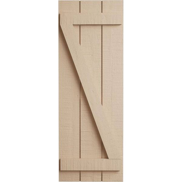 16.5 in. x 90 in. Timberthane Polyurethane 3-Board Joined Board-n-Batten Rough Cedar Faux Wood Shutters w/Z-Board Pair
