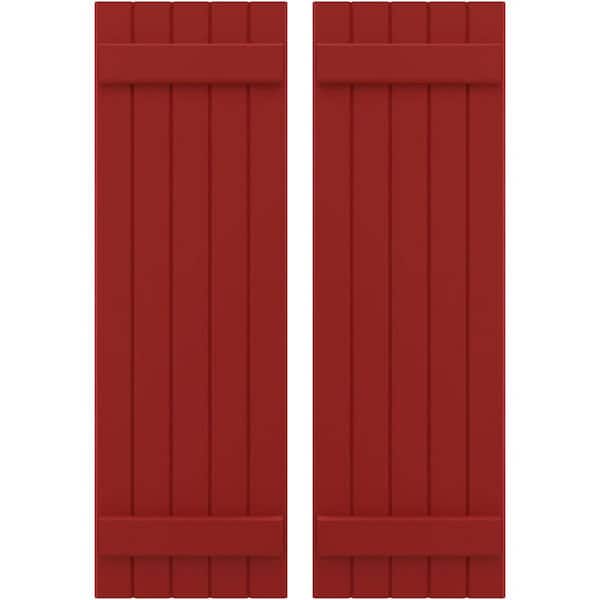 17-1/2 in. W x 34 in. H Americraft 5-Board Exterior Real Wood Joined Board and Batten Shutters in Fire Red