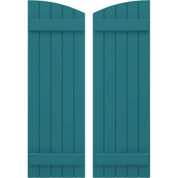 17-1/2 in. W x 35 in. H Americraft Exterior Real Wood Joined Board and Batten Shutters with Elliptical Top Antigua