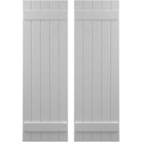 17-1/2 in. W x 40 in. H Americraft 5 Board Exterior Real Wood Joined Board and Batten Shutters Primed