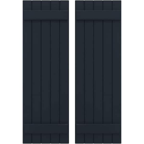 17-1/2 in. W x 41 in. H Americraft 5-Board Exterior Real Wood Joined Board and Batten Shutters in Starless Night Blue