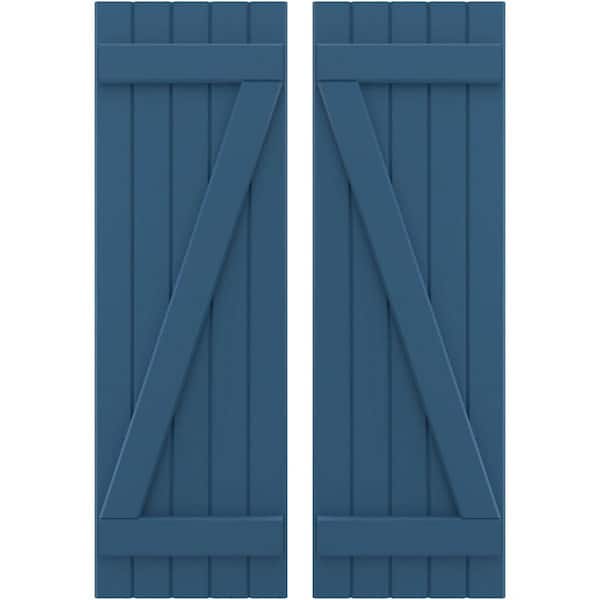 17-1/2 in. W x 50 in. H Americraft 5 Board Exterior Real Wood Joined Board and Batten Shutters with Z-Bar Sojourn Blue