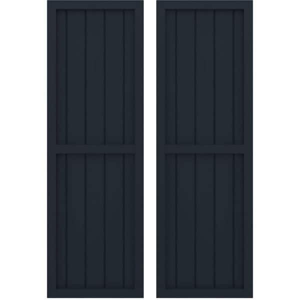 17-1/2 in. W x 66 in. H Americraft 5-Board Real Wood 2 Equal Panel Framed Board and Batten Shutters Starless Night Blue
