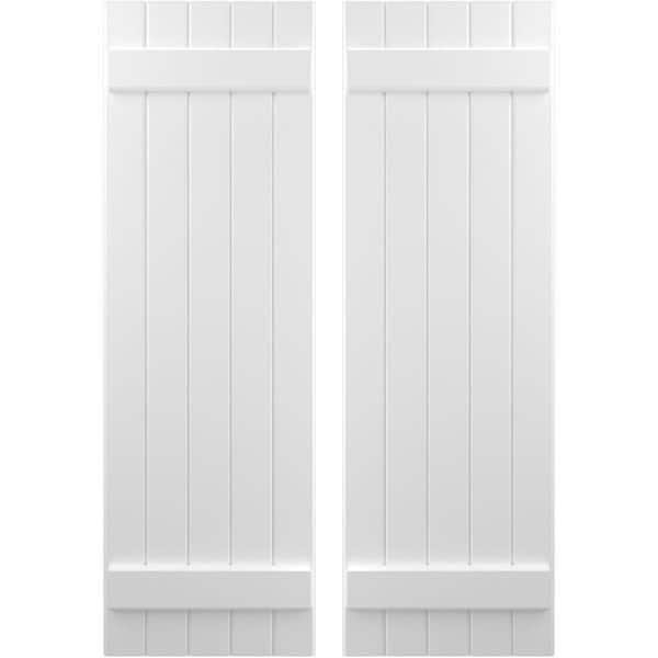 17-1/2 in. W x 72 in. H Americraft 5-Board Exterior Real Wood Joined Board and Batten Shutters in White