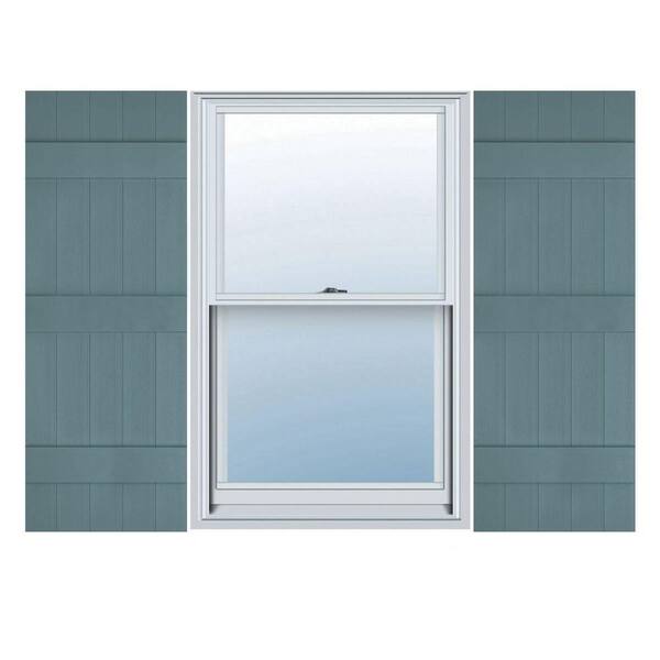 17-1/2 in. x 89 in. Lifetime Vinyl Custom Five Board Joined Board and Batten Shutters Pair Wedgewood Blue