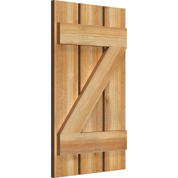 17-1/8" X 28"Timbercraft Rustic Wood Three 5-3/8"Spaced Board and Batten Shutters with Z-Bar Rough Sawn Cedar(pair)