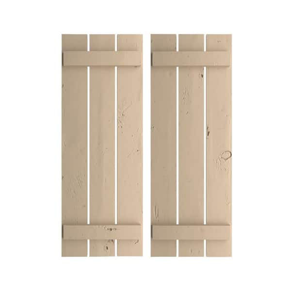 17.5 in. x 46 in. Timberthane Polyurethane 3-Board Spaced Board-n-Batten Knotty Pine Faux Wood Shutters Pair