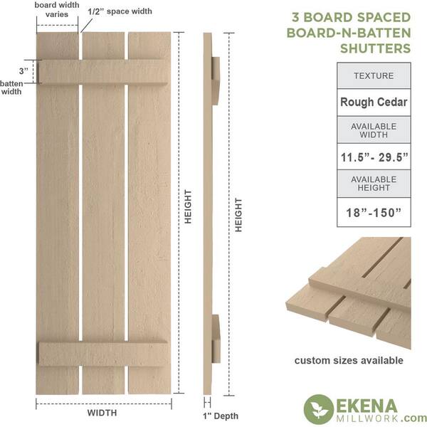 17.5 in. x 50 in. Timberthane Polyurethane 3-Board Spaced Board-n-Batten Rough Cedar Faux Wood Shutters Pair