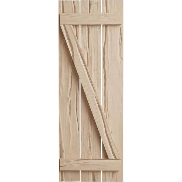 17.5 in. x 52 in. Timberthane Polyurethane 3-Board Spaced Board-n-Batten Riverwood Faux Wood Shutters w/Z-Board Pair