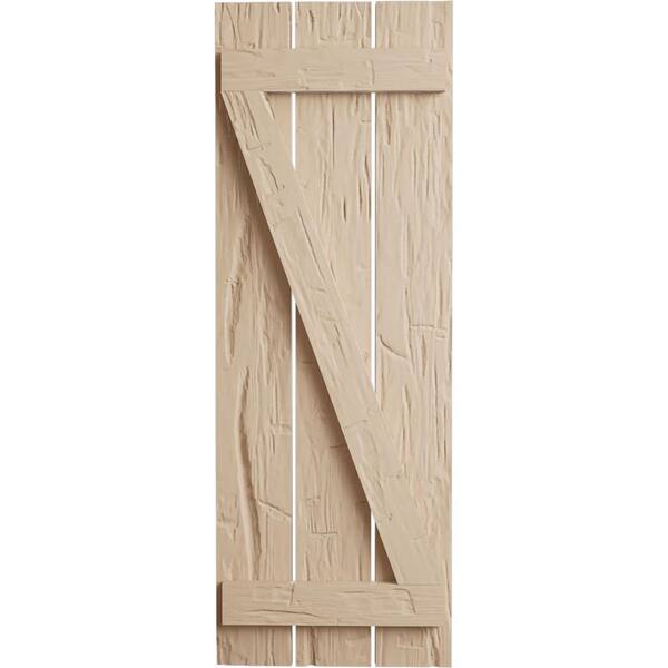 17.5 in. x 60 in. Timberthane Polyurethane 3-Board Spaced Board-n-Batten Hand Hewn Faux Wood Shutters w/Z-Board Pair