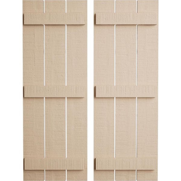17.5 in. x 76 in. Timberthane Polyurethane 3-Board Spaced Board-n-Batten Rough Cedar Faux Wood Shutters Pair