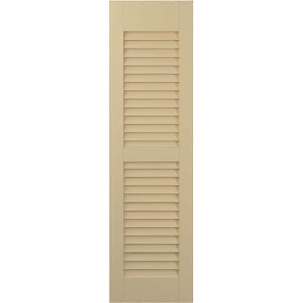 18 in. W x 48 in. H Americraft 2 Equal Louver Exterior Real Wood Shutters Per Pair in Natural Twine