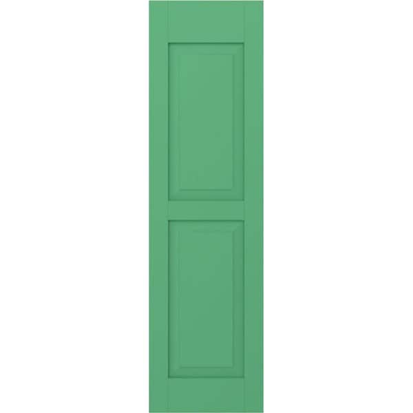 18 in. W x 59 in. H Americraft 2 Equal Raised Panel Exterior Real Wood Shutters Pair in Lily Pads