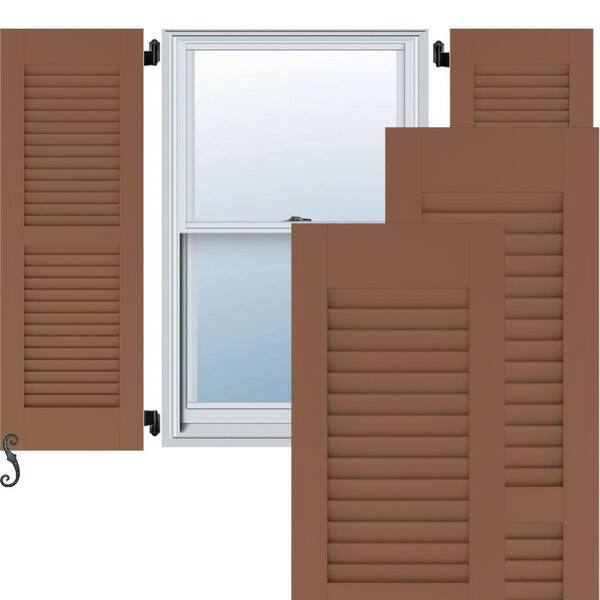 18 in. W x 70 in. H Americraft 2 Equal Louver Exterior Real Wood Shutters Per Pair in Burnt Toffee