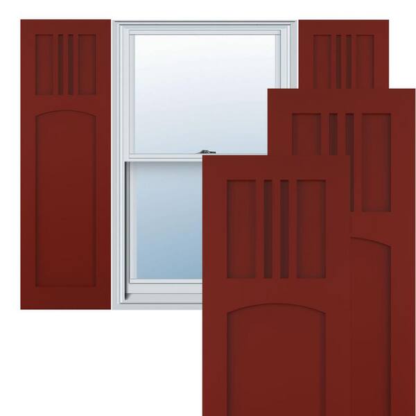 18 in. x 30 in. PVC True Fit San Miguel Mission Style Fixed Mount Flat Panel Shutters Pair in Pepper Red