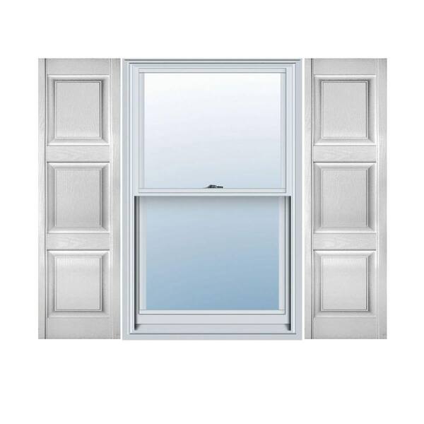 18 in. x 32 in. Lifetime Vinyl Custom 3 Equal Raised Panel Shutters Pair White