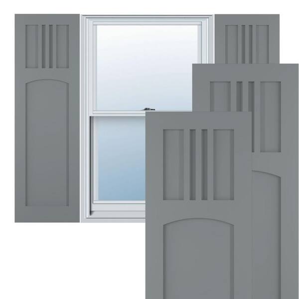 18 in. x 34 in. PVC True Fit San Miguel Mission Style Fixed Mount Flat Panel Shutters Pair in Ocean Swell