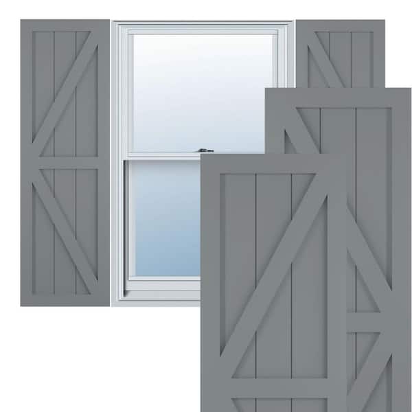 18 in. x 36 in. PVC Two Equal Panel Farmhouse Fixed Mount Board and Batten Shutters Pair with Z-Bar in Ocean Swell