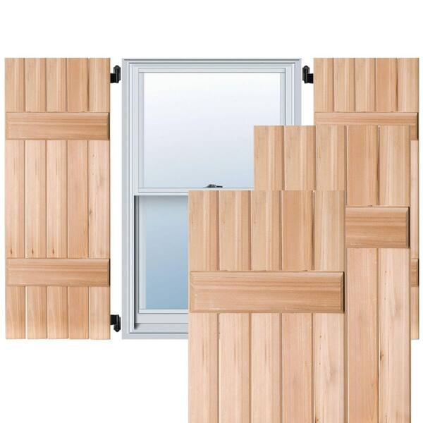18 in. x 44 in. Exterior Real Wood Sapele Mahogany Board and Batten Shutters Pair Unfinished