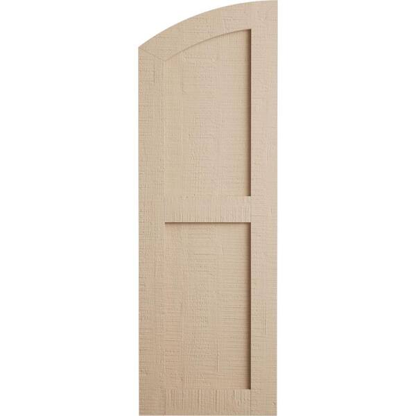 18 in. x 46 in. Polyurethane Timberthane Rough Cedar Two Equal Flat Panel Elliptical Top Faux Wood Shutters Primed Tan