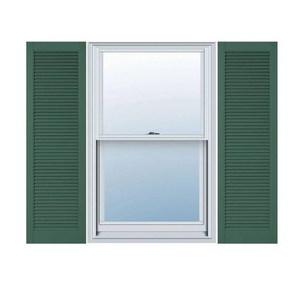 18 in. x 47 in. Lifetime Vinyl Custom Straight Top All Open Louvered Shutters Pair Forest Green