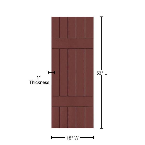 18 in. x 53 in. Exterior Real Wood Pine Board and Batten Shutters Pair Cottage Red