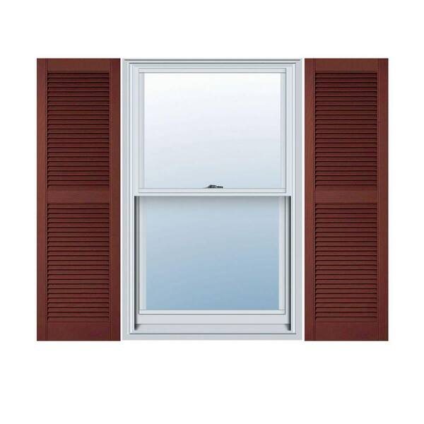 18 in. x 57 in. Lifetime Vinyl Custom Straight Top Center Mullion Open Louvered Shutters Pair Burgundy Red