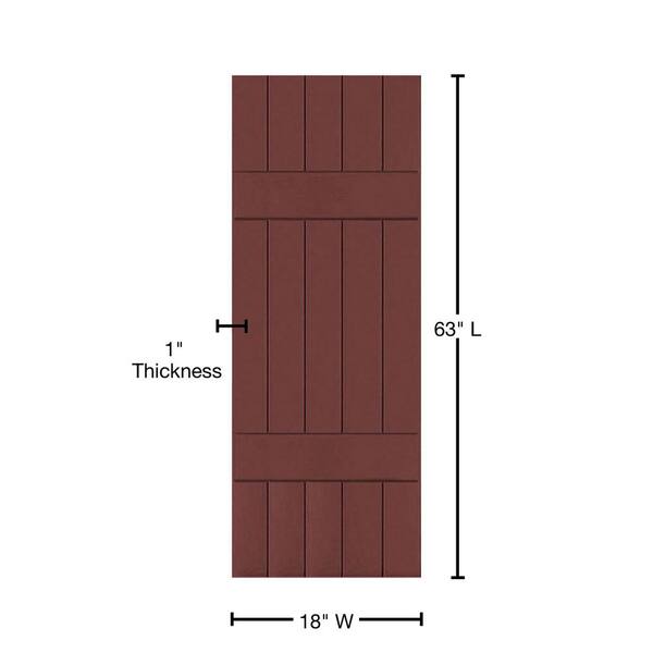 18 in. x 63 in. Exterior Real Wood Pine Board and Batten Shutters Pair Cottage Red