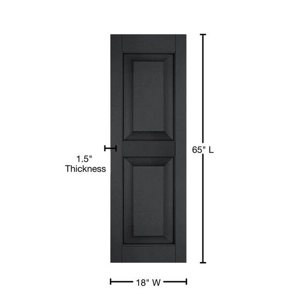 18 in. x 65 in. Exterior Real Wood Western Red Cedar Raised Panel Shutters Pair Black