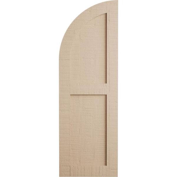 18 in. x 68 in. Polyurethane Rough Cedar Two Equal Flat Panel w/Quarter Round Arch Top Faux Wood Shutters Primed Tan