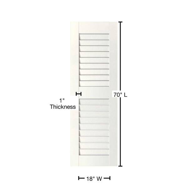 18 in. x 70 in. Exterior Real Wood Pine Louvered Shutters Pair White