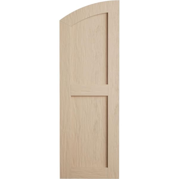 18 in. x 88 in. Polyurethane Timberthane Rough Sawn Two Equal Flat Panel Elliptical Top Faux Wood Shutters Primed Tan