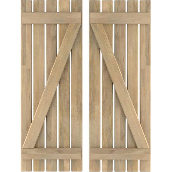 19-1/2 in. W x 51 in. H Americraft 5-Board Exterior Real Wood Spaced Board and Batten Shutters with Z-Bar in Unfinished
