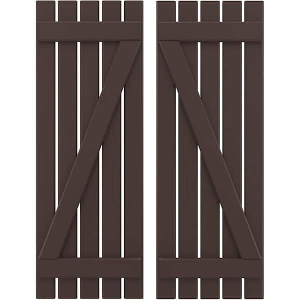 19-1/2 in. W x 56 in. H Americraft 5 Board Exterior Real Wood Spaced Board and Batten Shutters with Z-Bar Raisin Brown