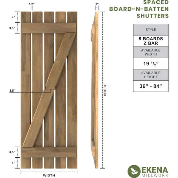 19-1/2 in. W x 68 in. H Americraft 5-Board Exterior Real Wood Spaced Board and Batten Shutters with Z-Bar in Track Green