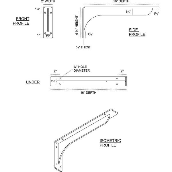 2 in. W x 6-1/2 in. H x 16 in. D Hammered Gold Embrey Steel Bracket