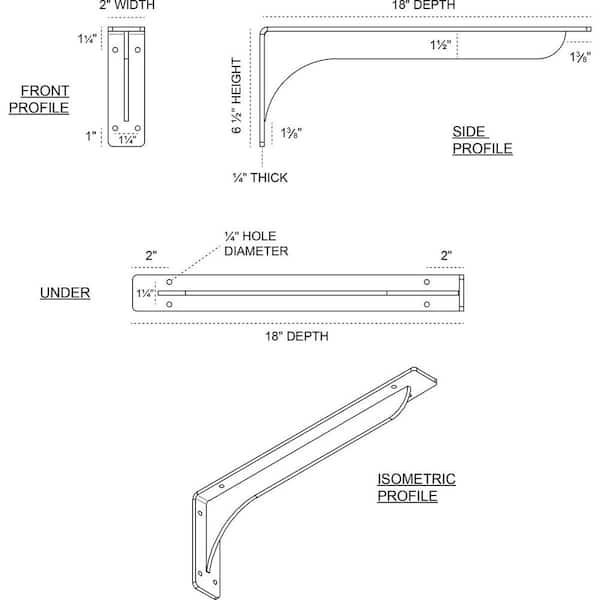 2 in. W x 6-1/2 in. H x 18 in. D Hammered Bright Red Embrey Steel Bracket