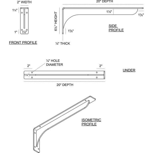 2 in. W x 6-1/2 in. H x 20 in. D Hammered Bright Red Embrey Steel Bracket