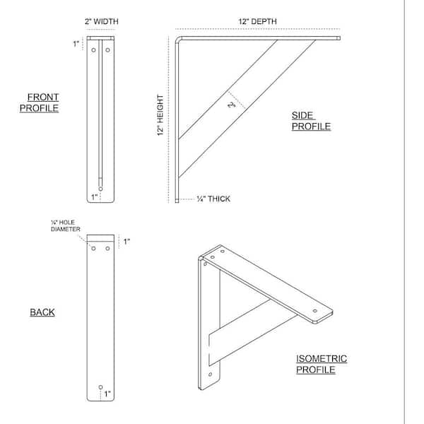2 in. x 12 in. x 12 in. Steel Hammered Brown Traditional Bracket