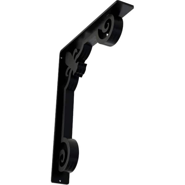 2 in. x 15 in. x 12 in. Wrought Iron Triple Center Brace Fleur-De-Lis Bracket