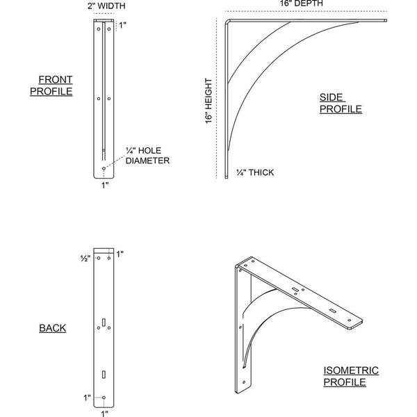 2 in. x 16 in. x 16 in. Steel Hammered Deep Green Legacy Bracket