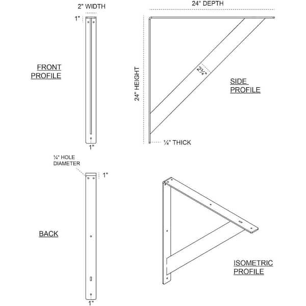2 in. x 24 in. x 24 in. Steel Hammered Bright Red Traditional Bracket