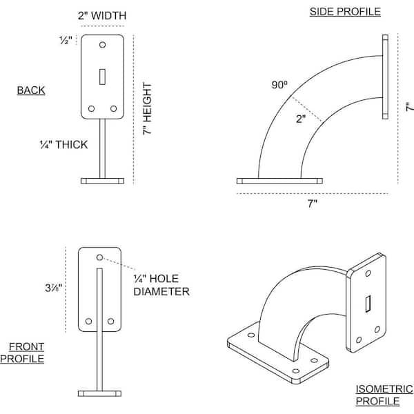 2 in. x 7 in. x 7 in. Steel Hammered Bright Red Bradford Bracket