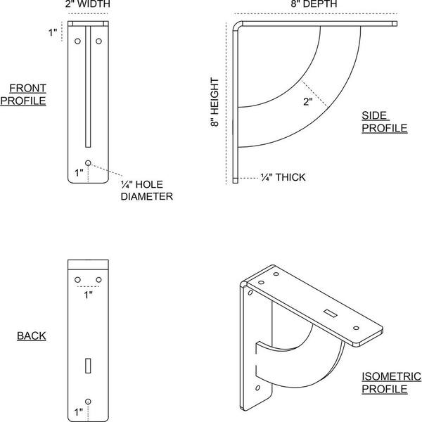 2 in. x 8 in. x 8 in. Steel Hammered Gray Bulwark Bracket