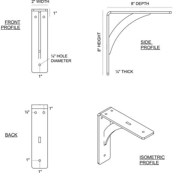 2 in. x 8 in. x 8 in. Steel Hammered Gray Legacy Bracket