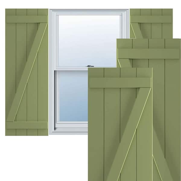 21-1/2 in. x 46 in. True Fit PVC 4-Board Joined Board and Batten Shutters with Z-Bar Pair in Moss Green